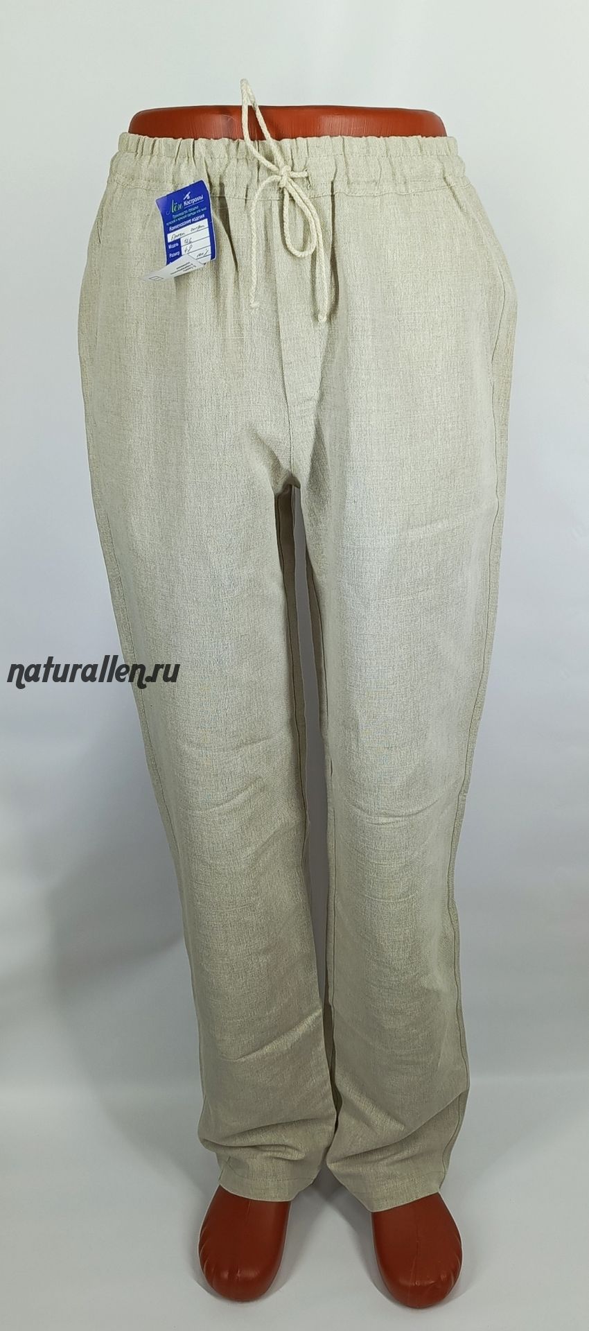 Брюки прямые,на широкой резинке, два боковых кармана и накладной карман сзади. Низ изделия не подшит, что даёт возможность индивидуально подобрать нужную длину брюк.