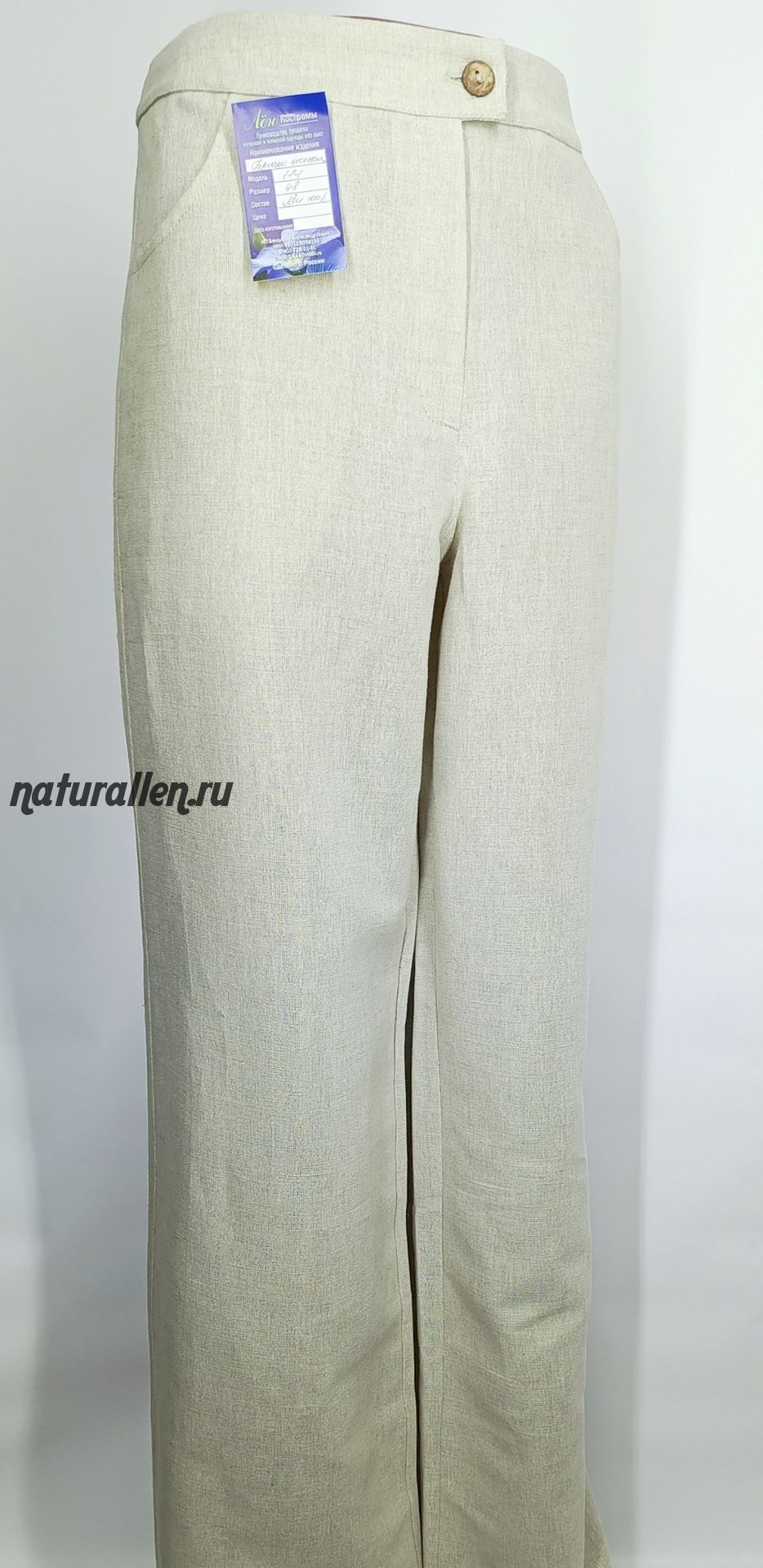 Брюки женские льняные "Классические".Цвет натурального льна. Модель брюк прямая, два втачных боковых кармана, застёжка молния и пуговица, на поясе по спинке широкая резинка, для плотного прилегания пояса к телу. Низ изделия не подшит, что даёт возможность индивидуально подобрать нужную длину брюк!