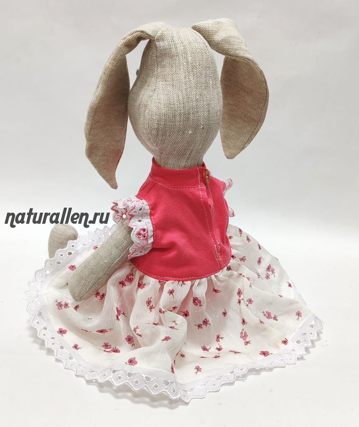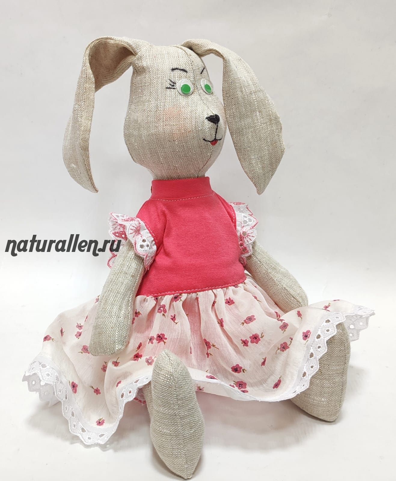 Игрушка из льна "Зайка" (розовое платье)