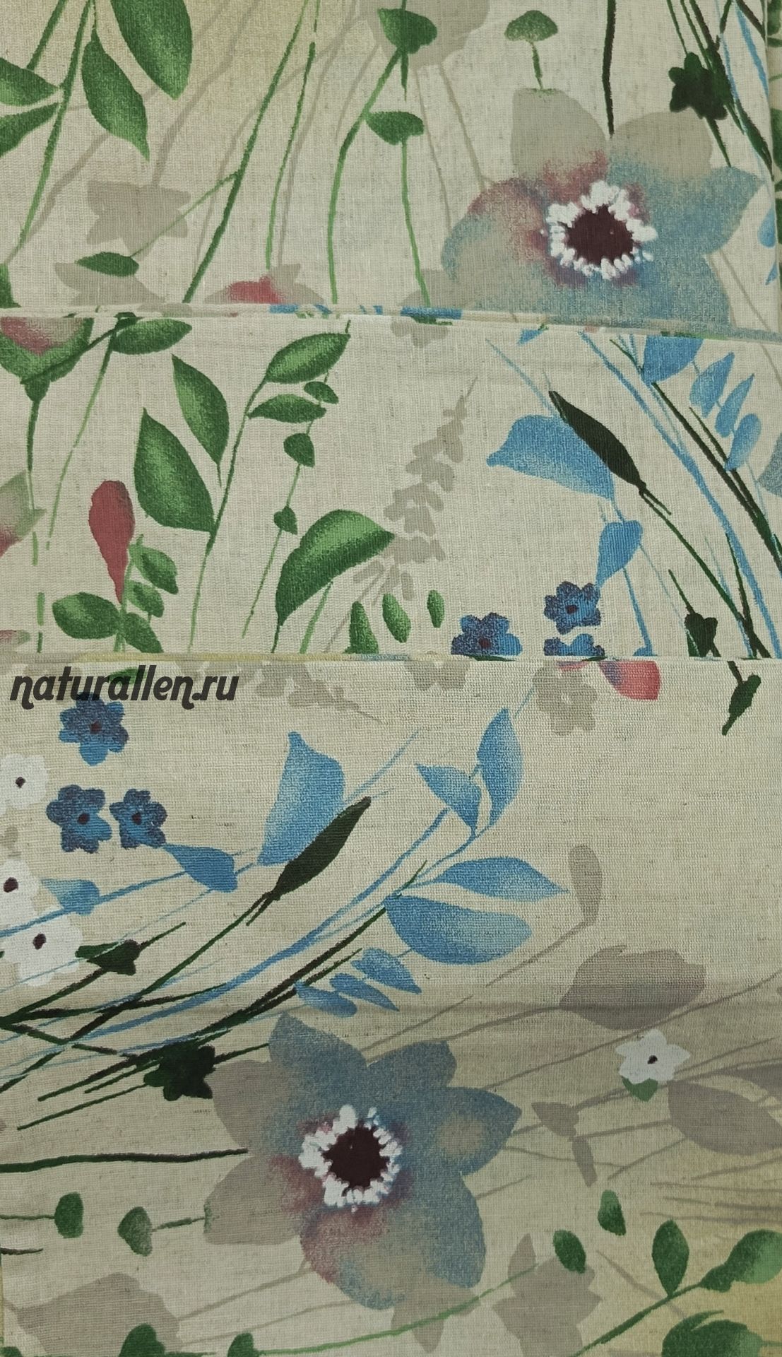 КПБ "Полянка" (полуторный) из полульняной  ткани (70% лён, 30% хлопок). Простыня  150*220 см, пододеяльник 1,5 спальный  220*150 см , наволочки 50*70 см (2 штуки).