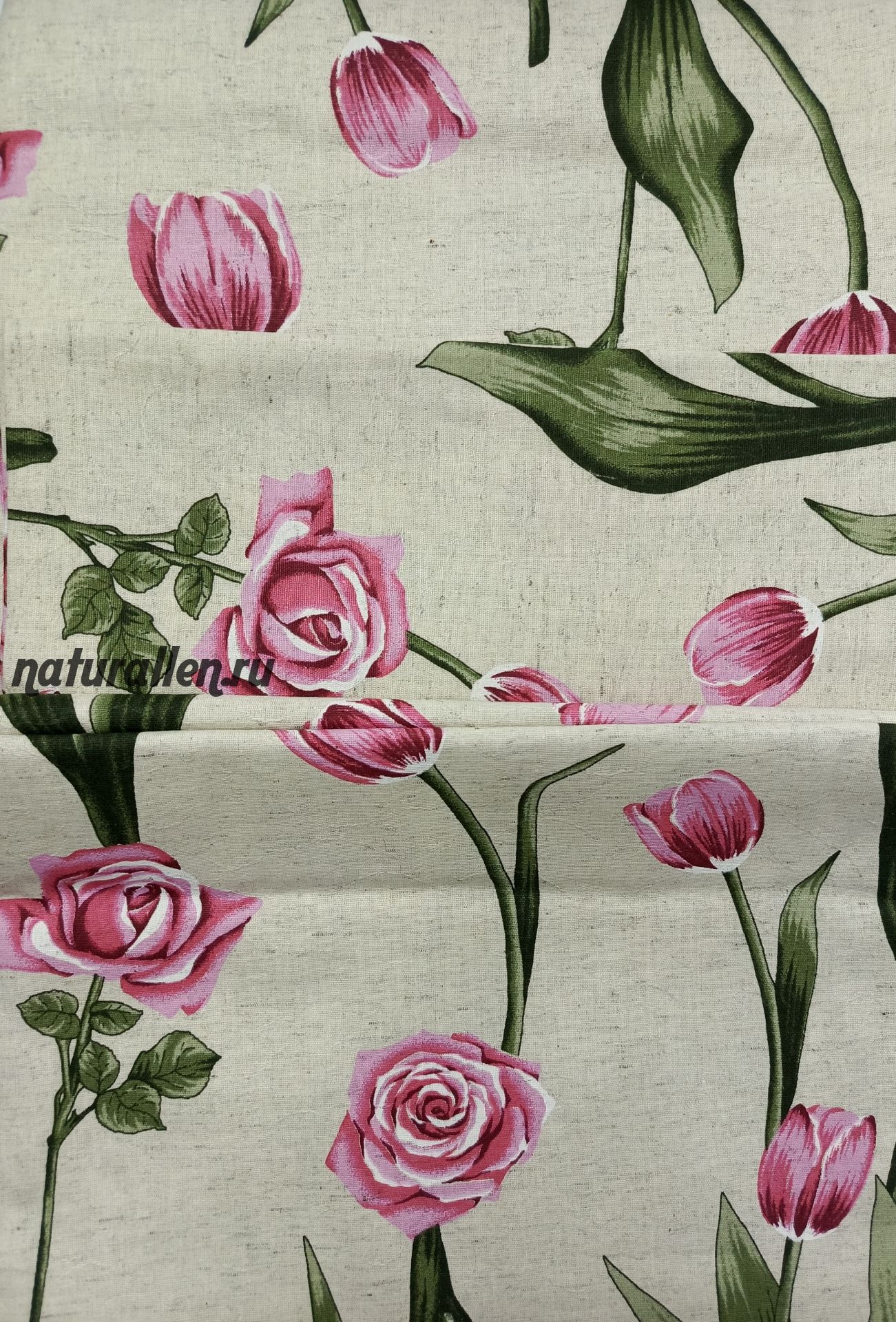 КПБ "Розы" (полуторный), наволочки 70/70 из полульняной  ткани (70% лён, 30% хлопок). Простыня  150*220 см, пододеяльник 1,5 спальный  220*150 см , наволочки 70*70 см (2 штуки).