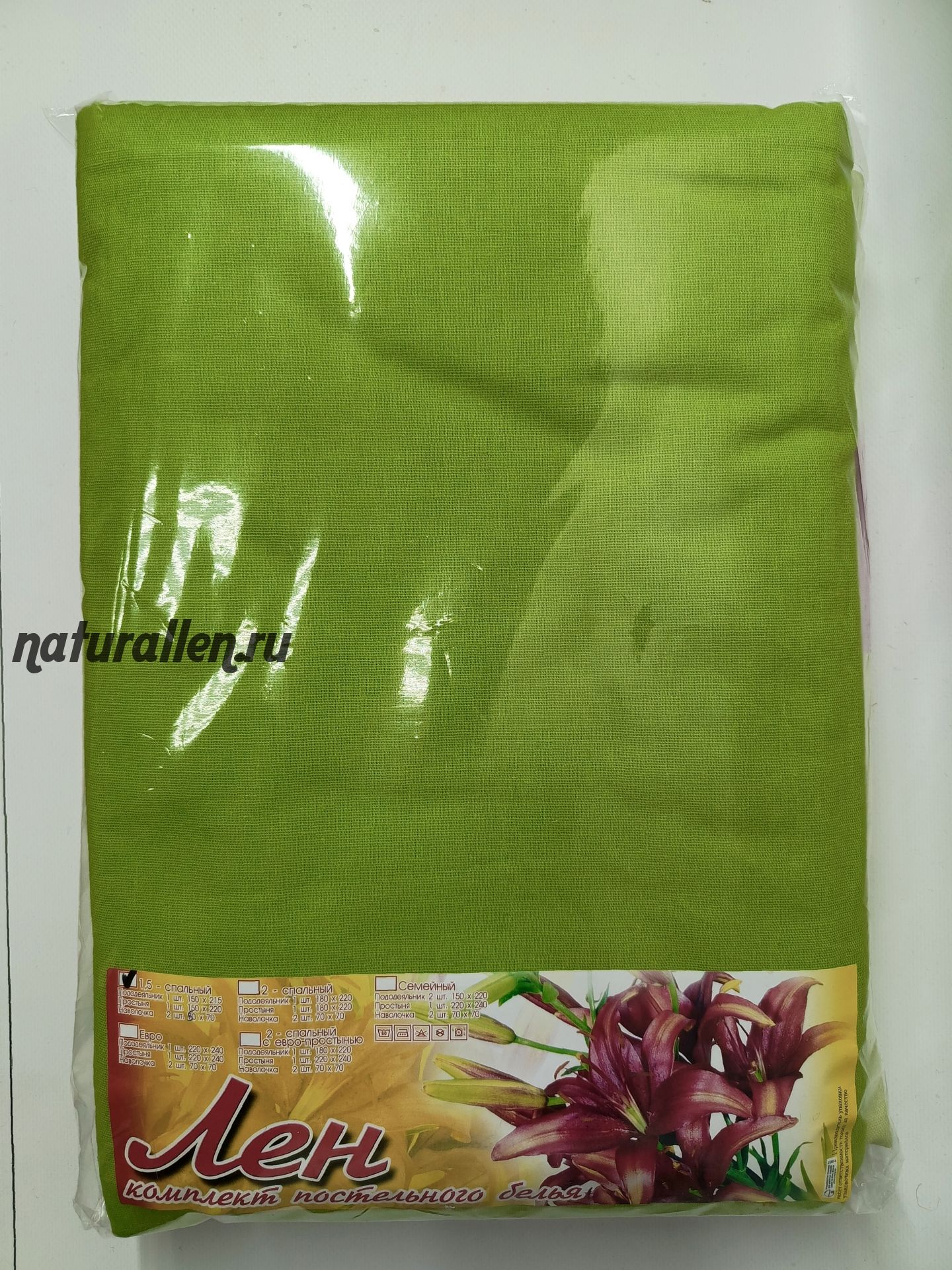 КПБ "Зелень"  (полуторный) наволочки 50/70( 2шт) из полульняной  ткани (состав 70% лён, 30% хлопок). Простыня  150*220 см,в цвет наволочек, 70%льна/30%хлопка, пододеяльник 1,5 спальный  215*150 см состав лен 100%.