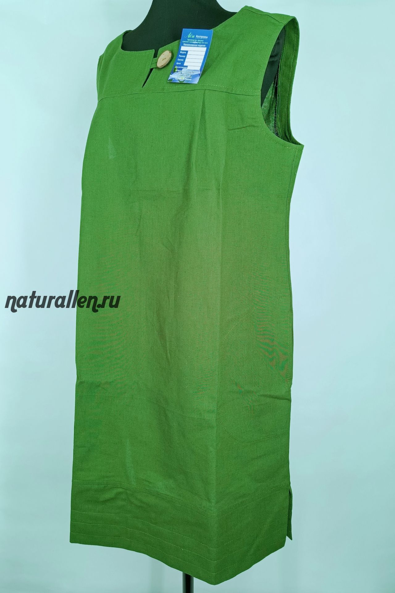 Льняное платье Пуговка зеленое Распродажа!