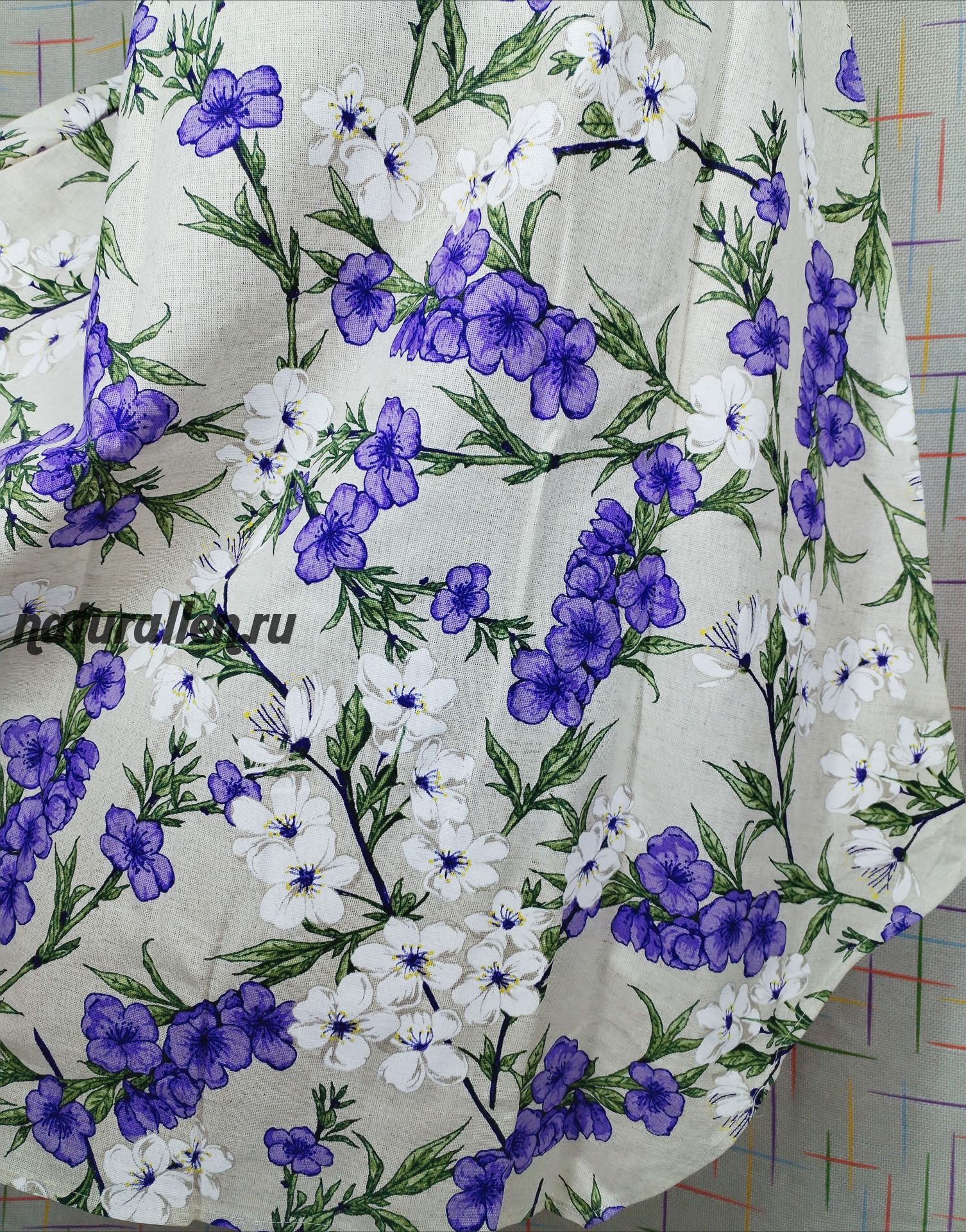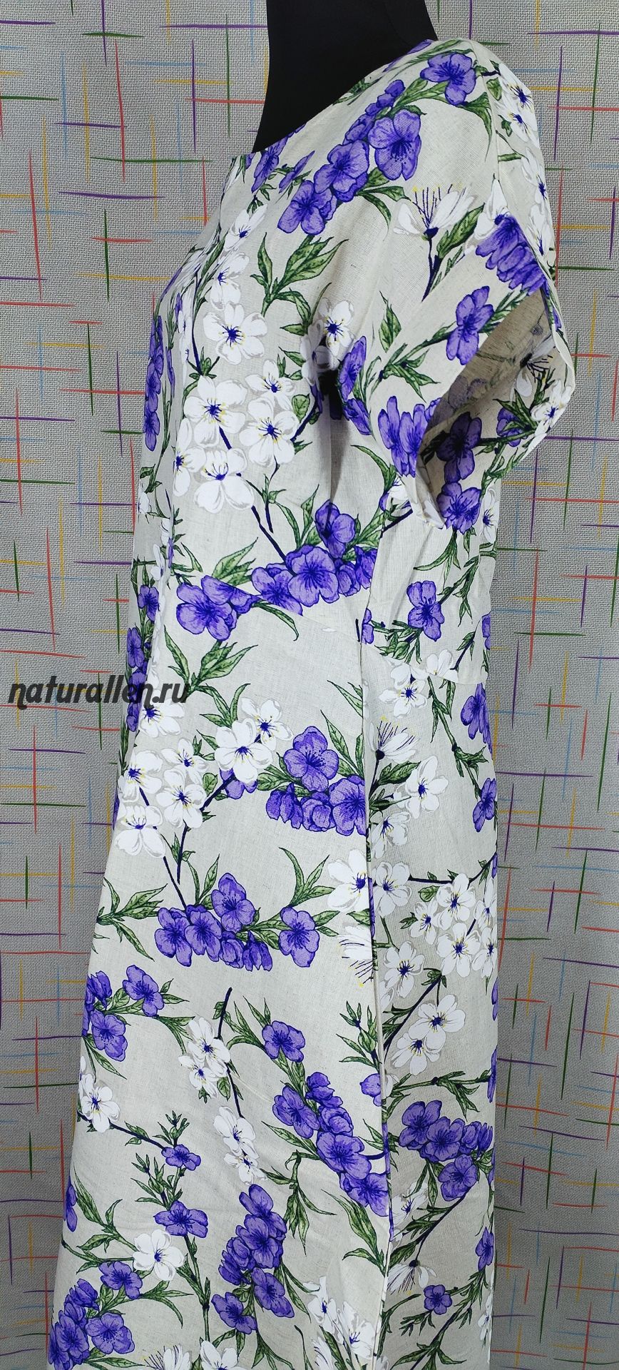 Льняное платье "Цветы Дикой Вишни". Крой свободный, с ассиметричным подолом,без карманов.Рукав короткий, на манжете. Без молний и застежек, легко и быстро одевается! Ростовка 165-175 см. Состав лён 70%/хлопок 30%. Длина ниже колена. Прекрасно подойдёт для жаркой погоды.