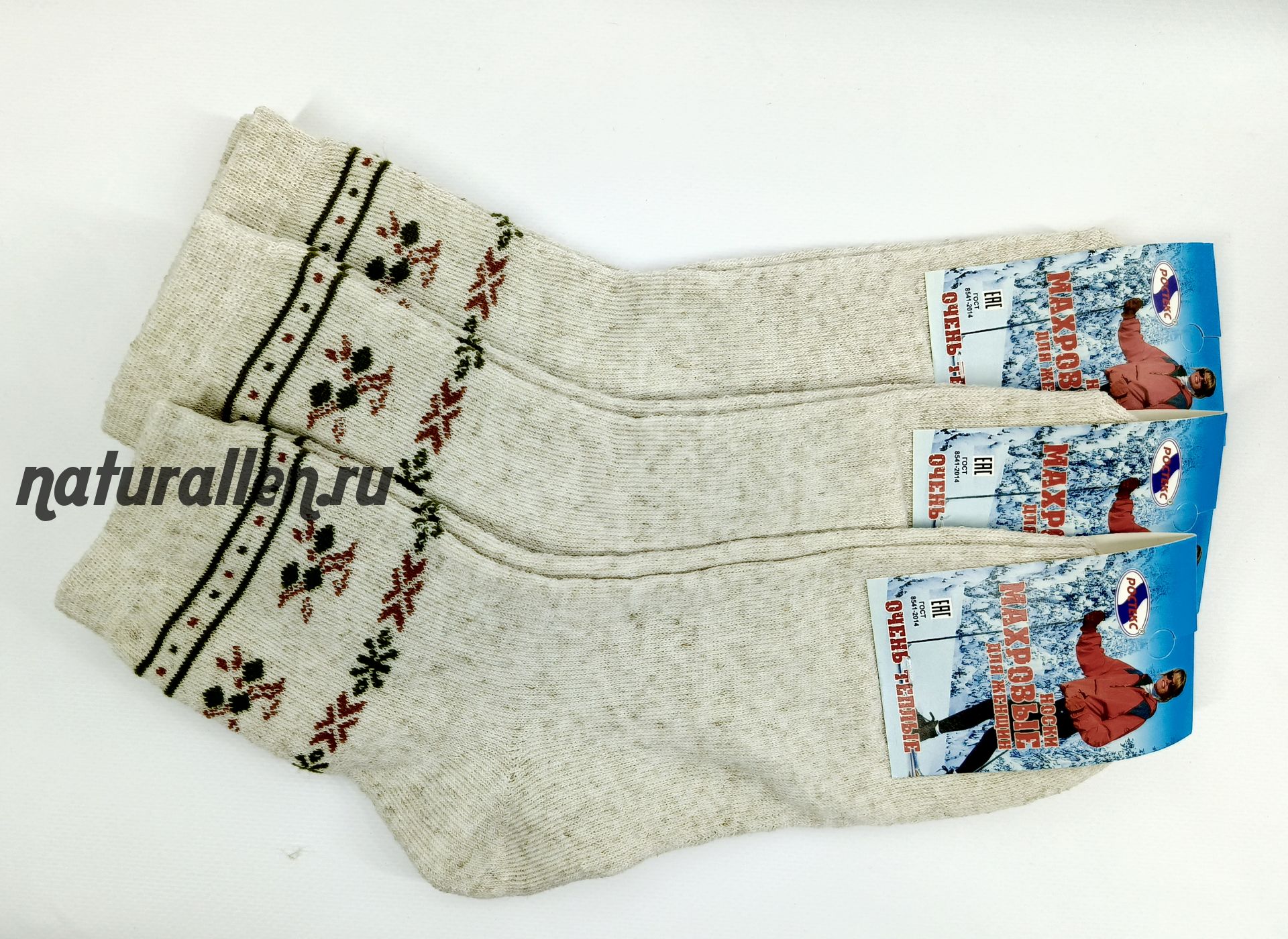 Махровые носки женские - изготовлены на фабрике в Беларуси из хлопка, льна и полиэстера: такое сочетание делает изделие более износостойким и гигроскопичным (способным впитывать и испарять влагу), а также придает ему особую фактуру.