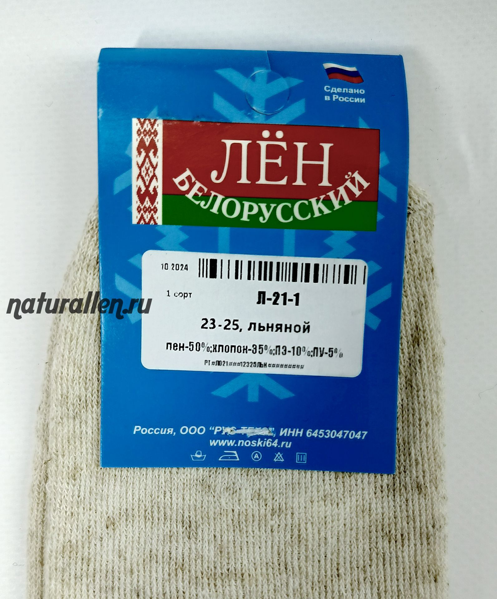 Теплые носки женские "Василина". Состав: лен-50%,ПЭ-10%,ПУ-5%.