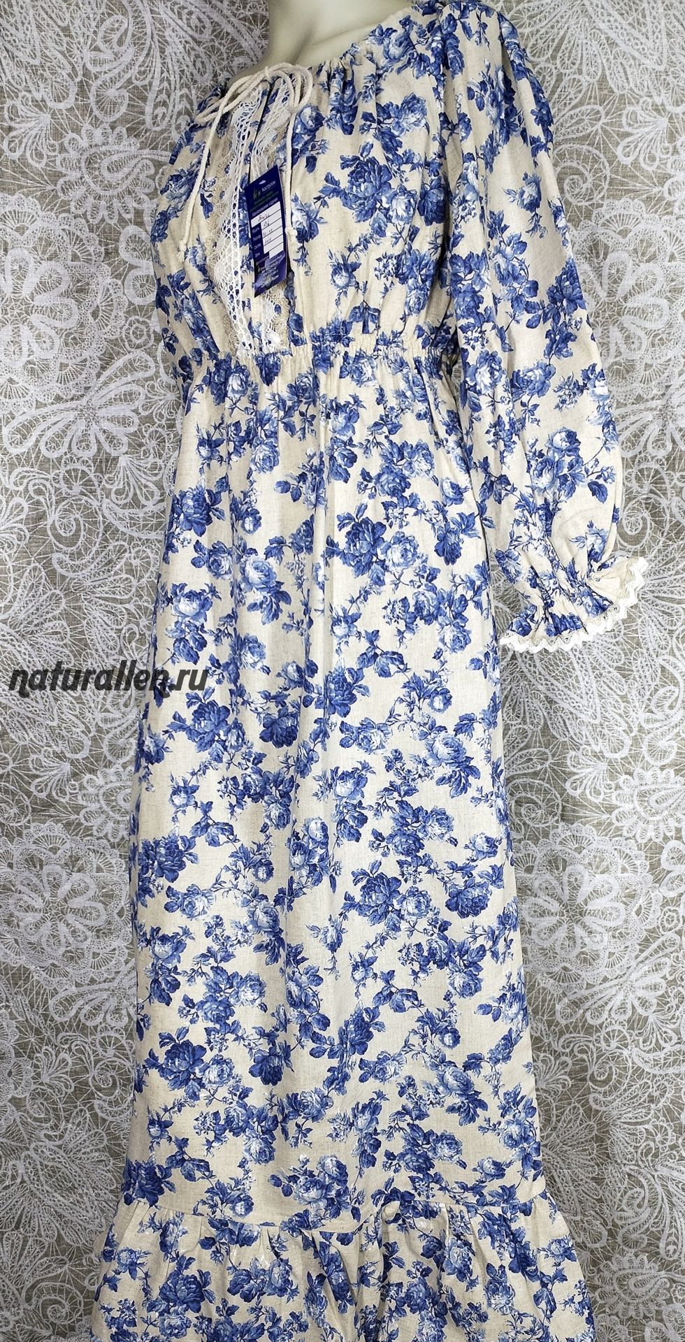 Летнее платье из  льна, длина в пол. На талии вшита резинка. Регулируется глубина воротника ( удобно будет и для кормления мамочкам, так как можно отогнуть). Есть карманы. Размеры универсальные.