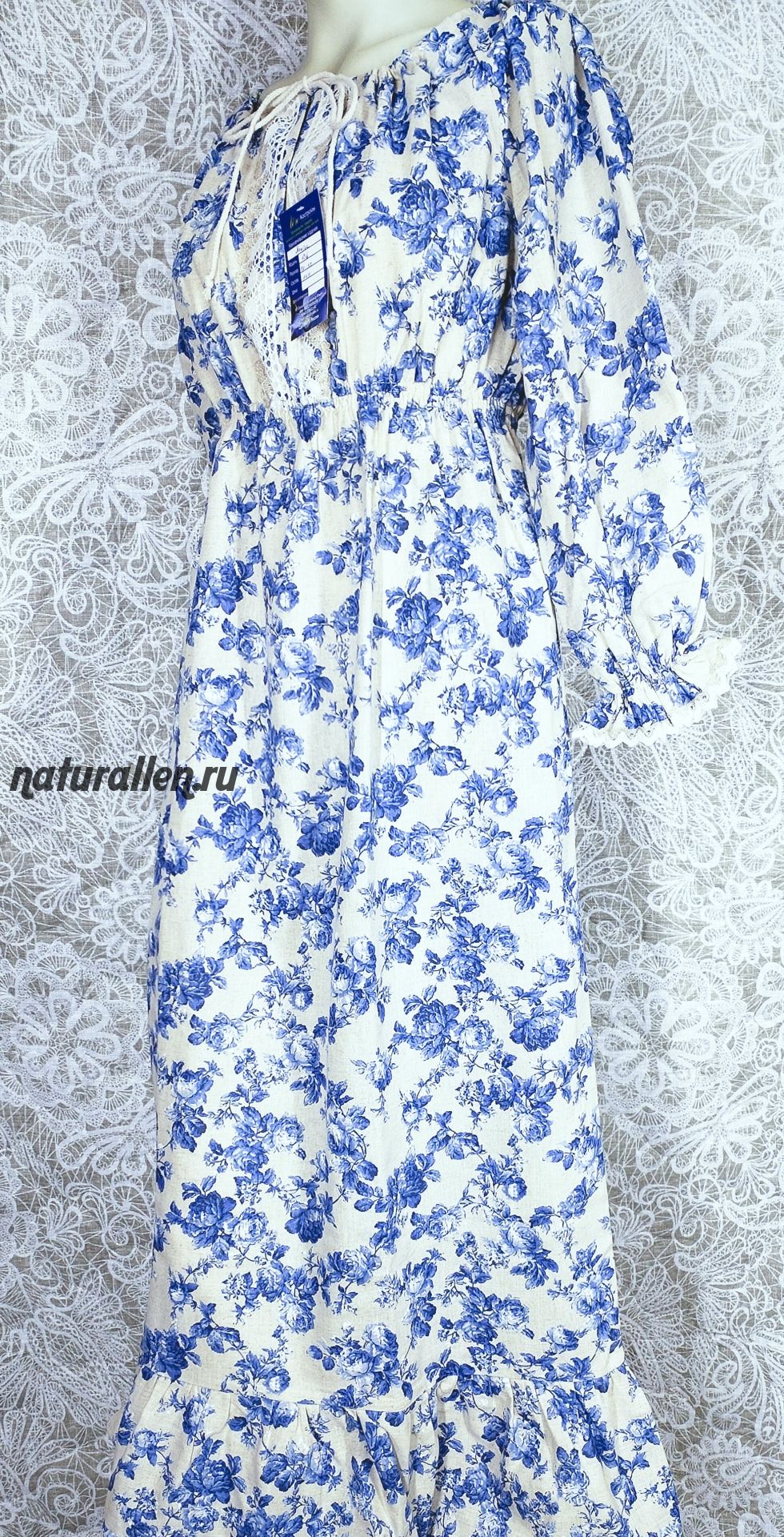 Платье в народном стиле синие розы