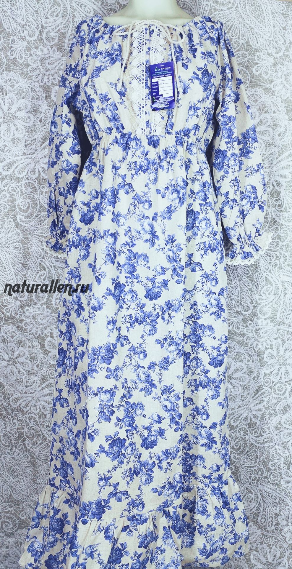 Летнее платье из  льна, длина в пол. На талии вшита резинка. Регулируется глубина воротника ( удобно будет и для кормления мамочкам, так как можно отогнуть). Есть карманы. Размеры универсальные.