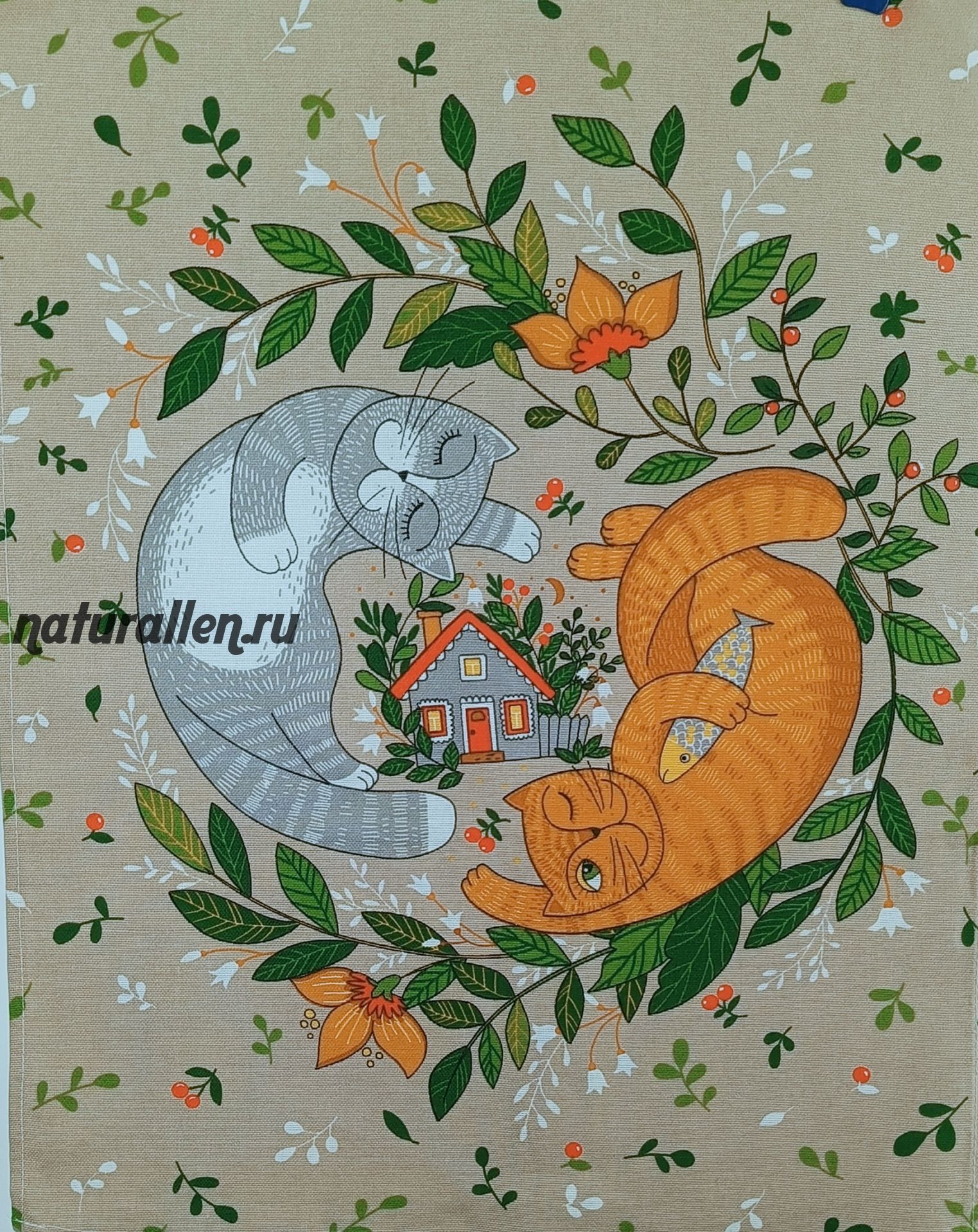 Полотенце кухонное"летние котики". Ткань 100 % хлопок.  Размер 47/60 см.