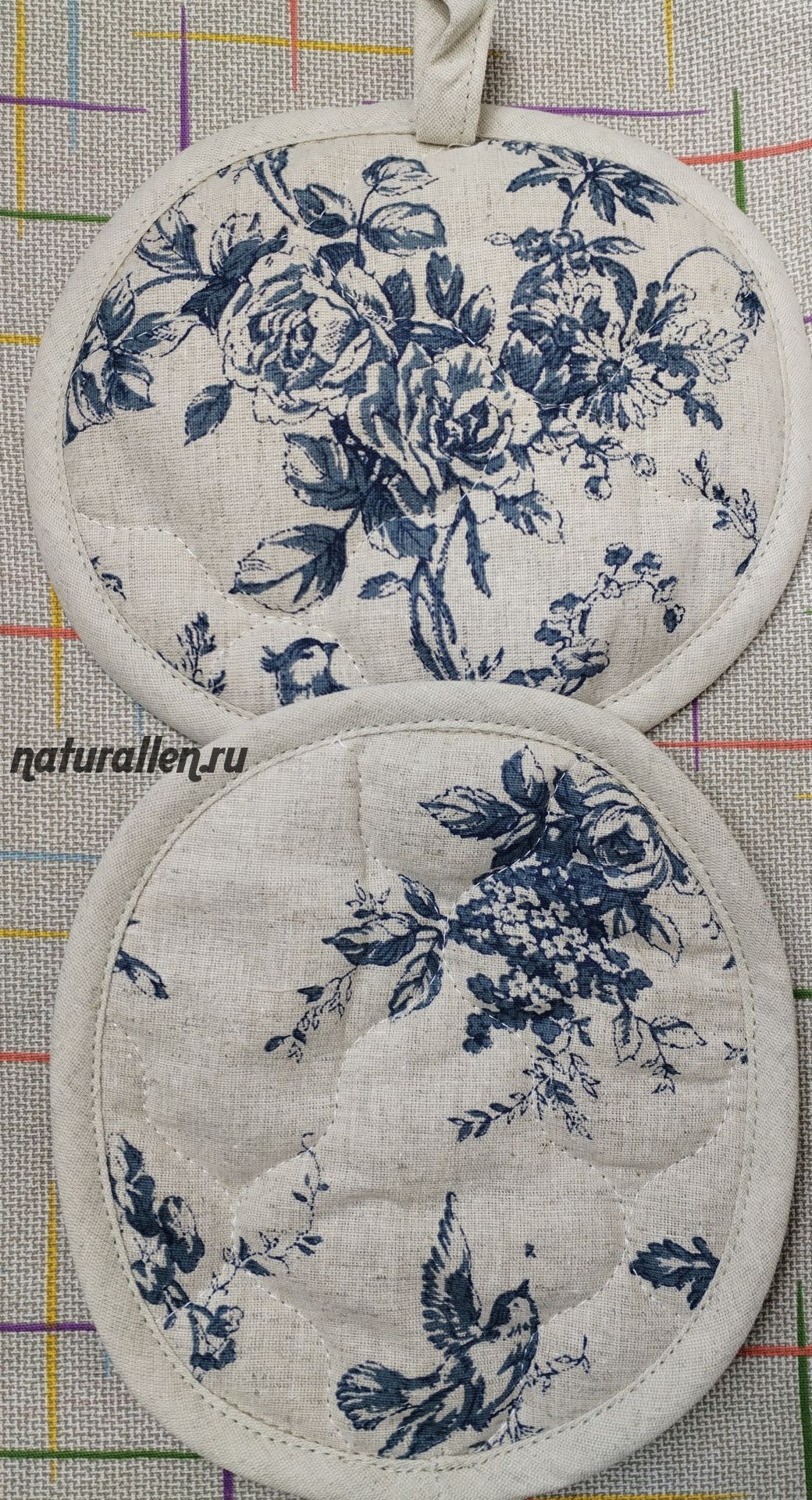 Прихватки для горячего Птички. Размер Ф20 см. Ткань лен, наполнитель льняное волокно.
