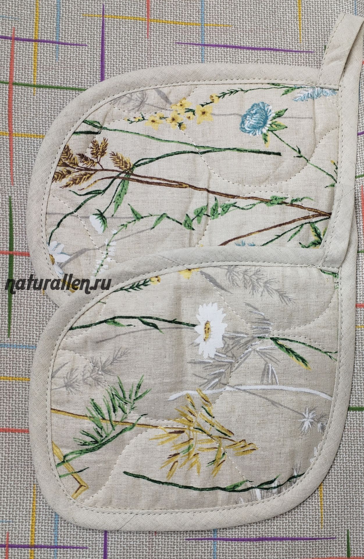 Прихватки для горячего (Ромашки). Размер 20*17 см. Ткань лен, наполнитель льняное волокно.