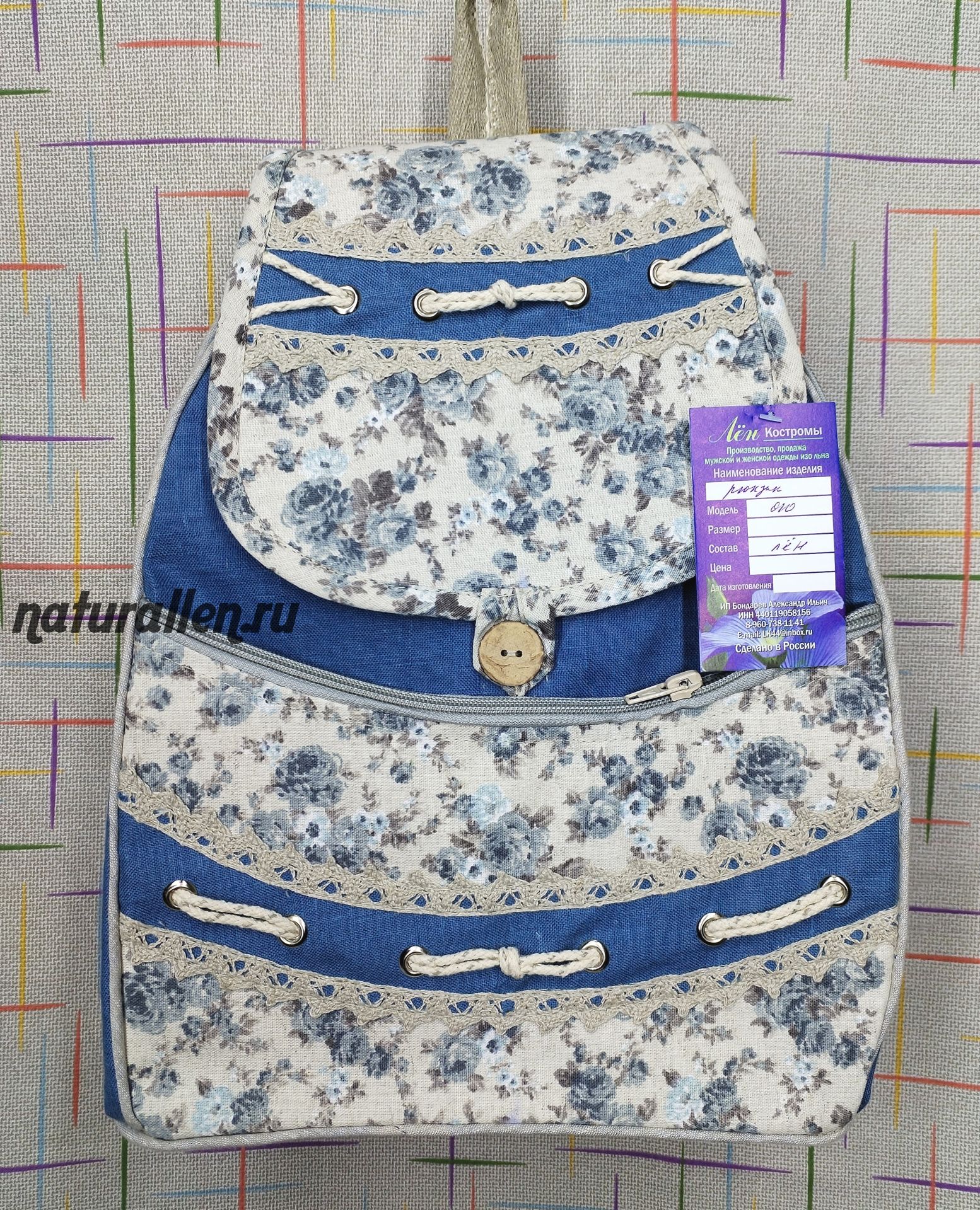 Рюкзак льняной "Голубой" (ручная работа)