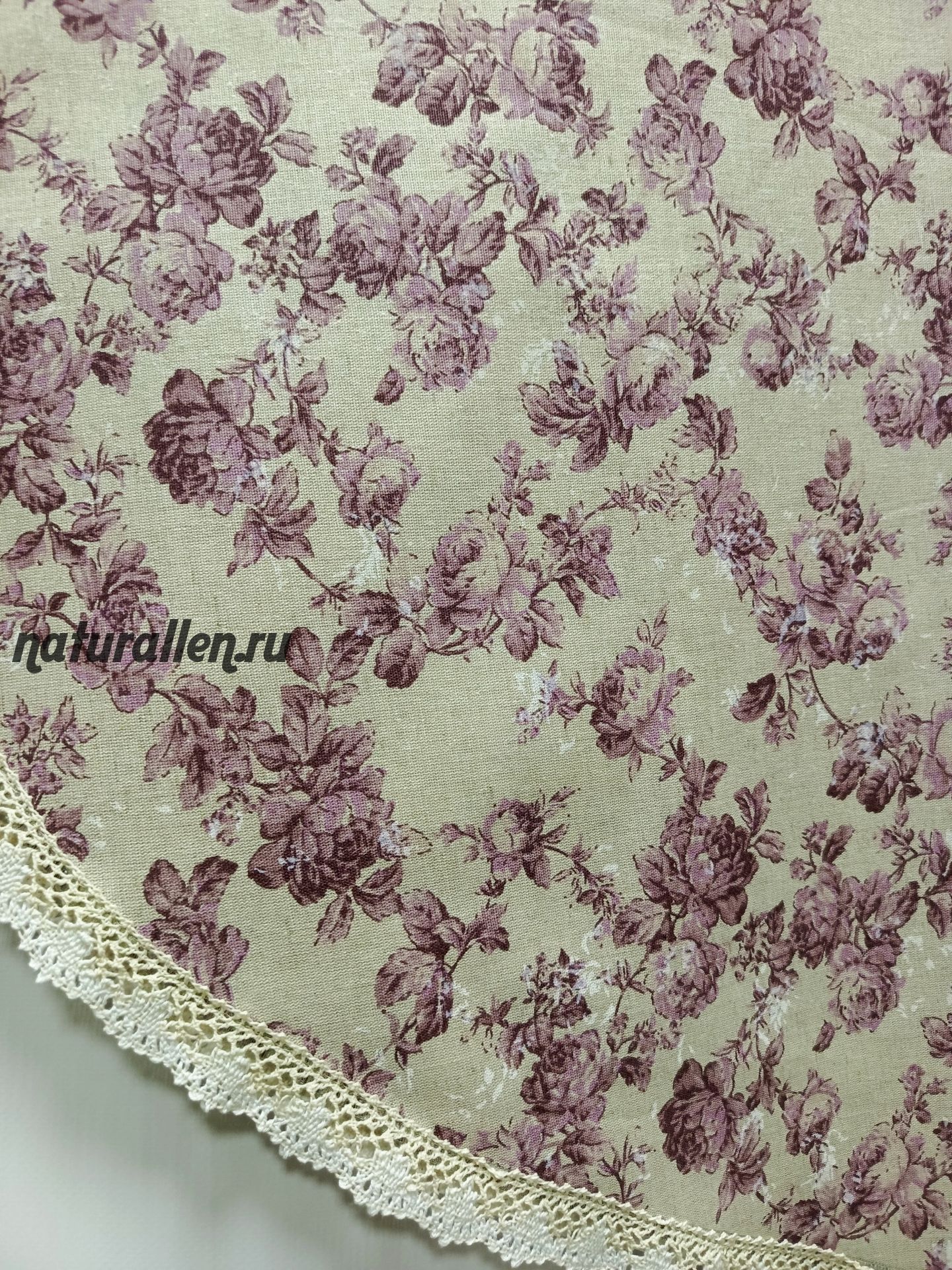 Скатерть кухонная круглая "Красные Розы", размер в диаметре 150 см. Ткань: 70% лён, 30% хлопок. Кружево 100% хлопок.
