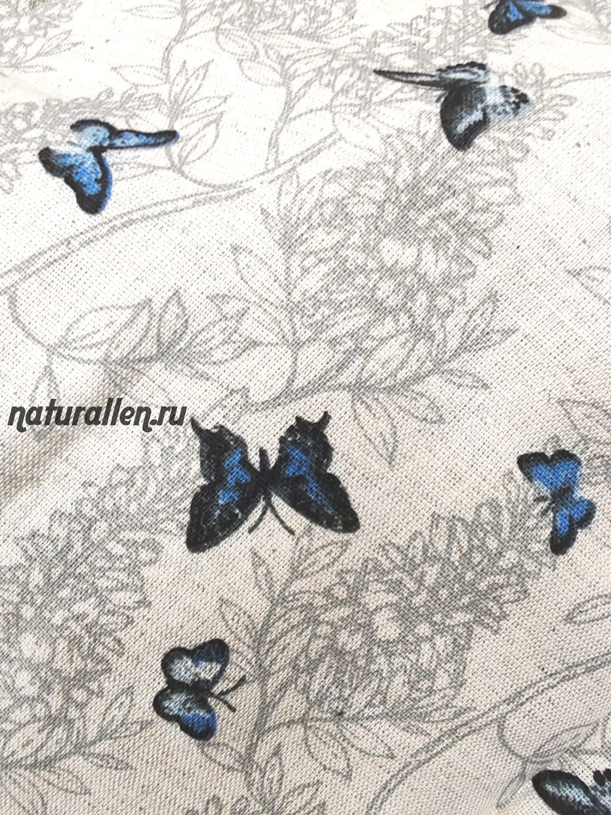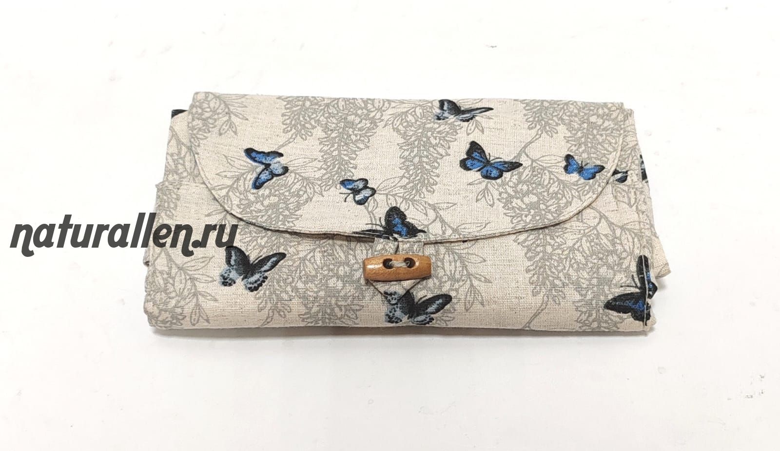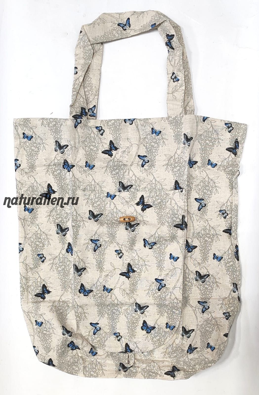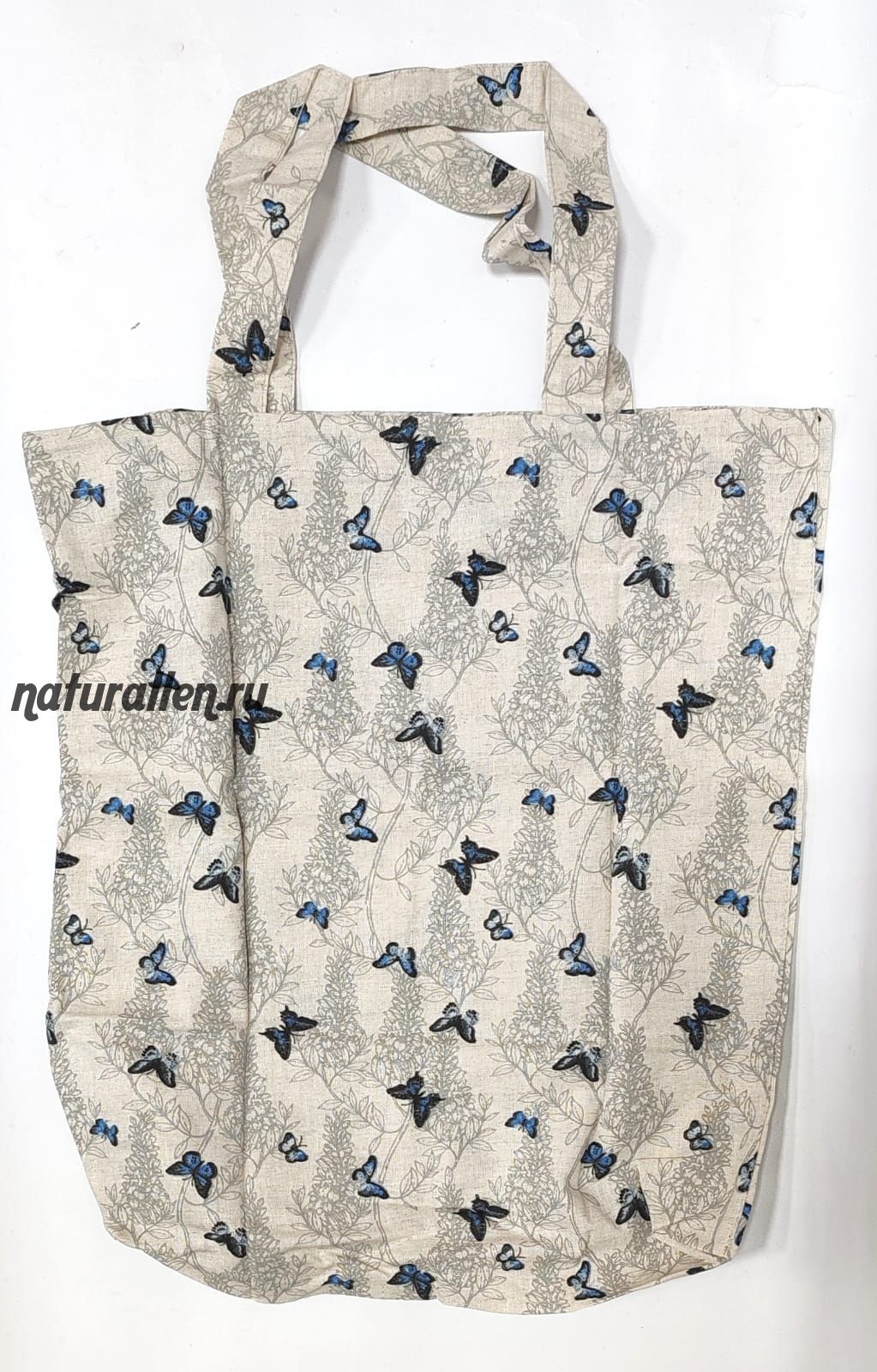 Сумка-шоппер льняная, расцветка "Бабочка".Размер 43/38 см. Складывается в небольшой кошелёк (18/10 см), не занимает много места.